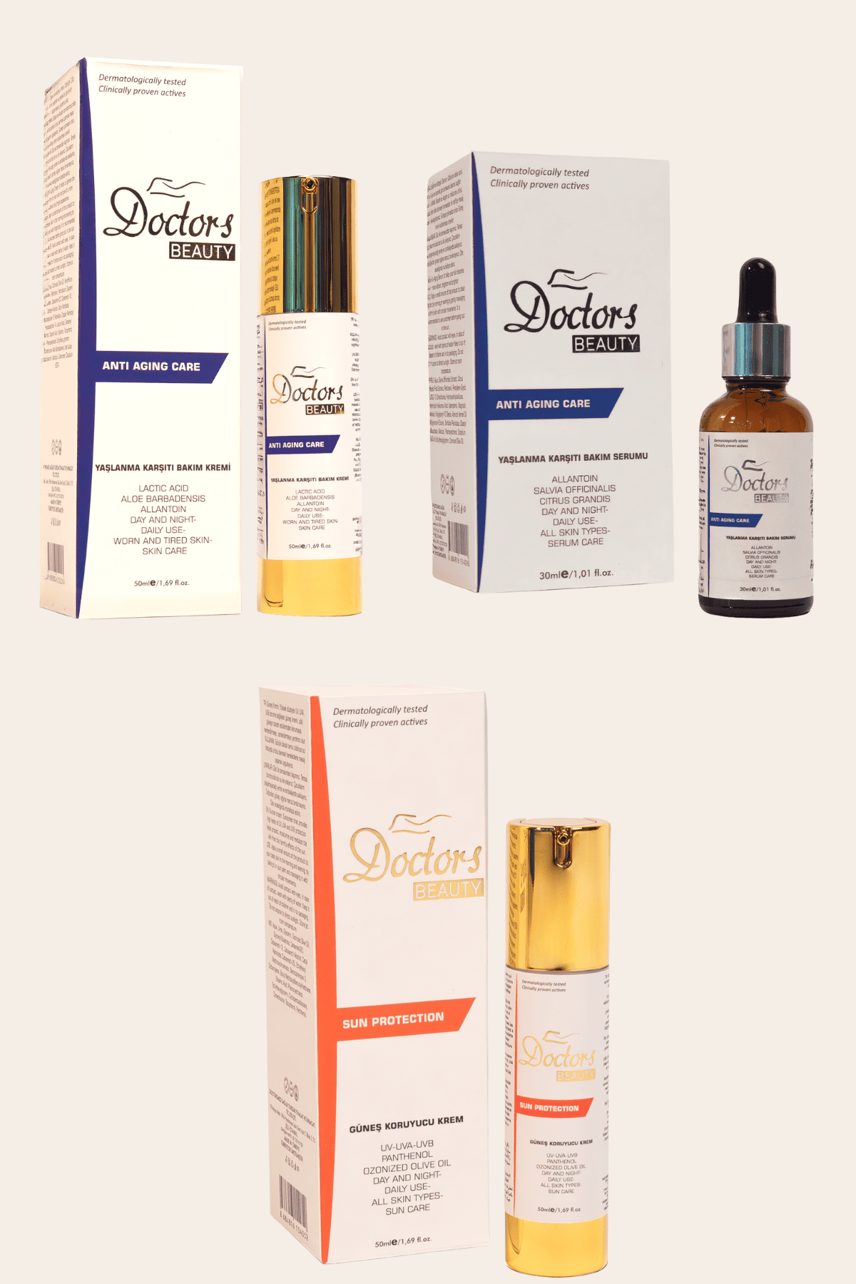 Cildinizin en iyi versiyonuna ulaşmak ve zamanın etkilerine meydan okumak için Doctors Beauty 3 Adımlı Komple Cilt Gençleştirme Seti ile tanışın!
